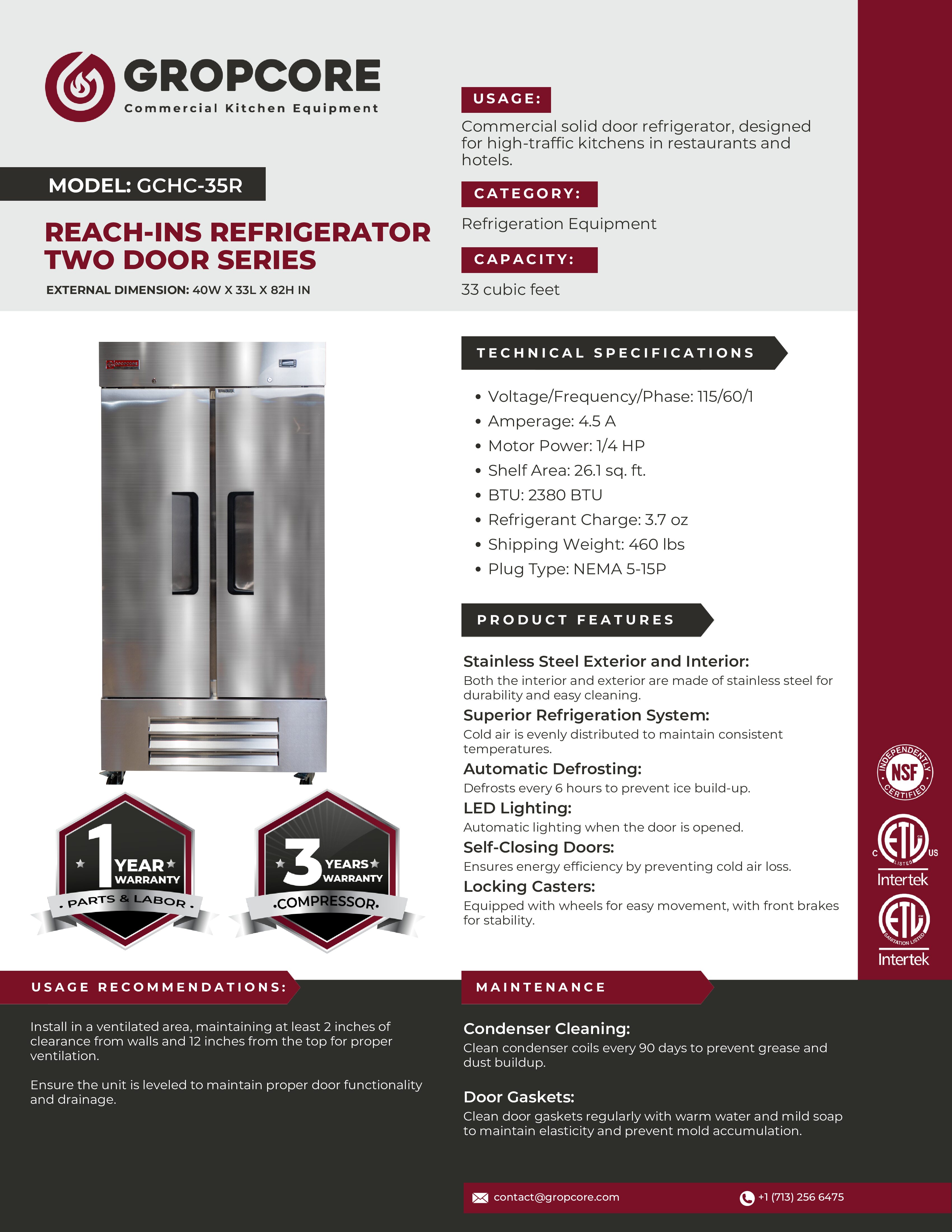 - GCHC-35R (Refrigerator): 33 cu. ft. | 26.1 sq. ft. shelving